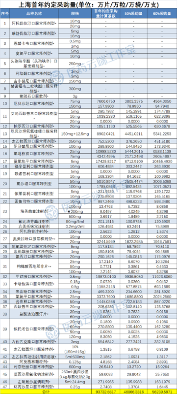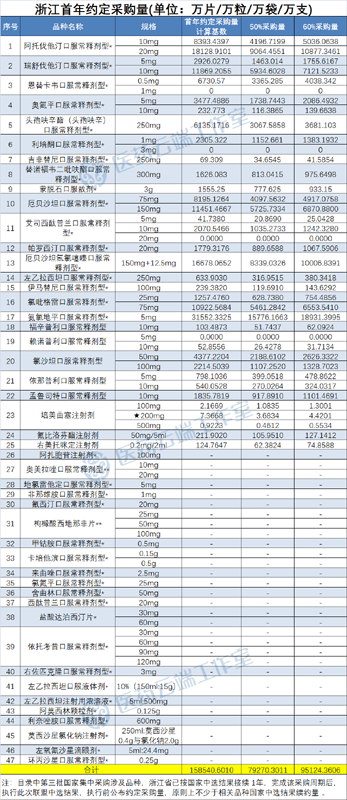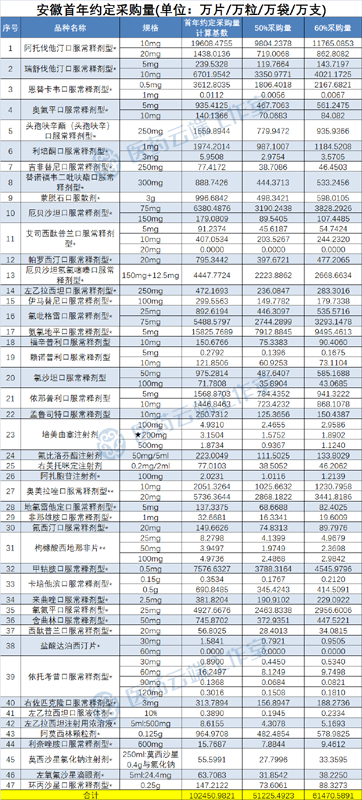 约定采购量:各品种首年约定采购量按以下规则确定:实际中选企业为该地国家集采同品种中选企业的,为首年约定采购量计算基数的60%;抗菌药物,以及实际中选企业非该地国家集采同品种中选企业的,为首年约定采购量计算基数的50%。各省采购量具体详见文末附表。