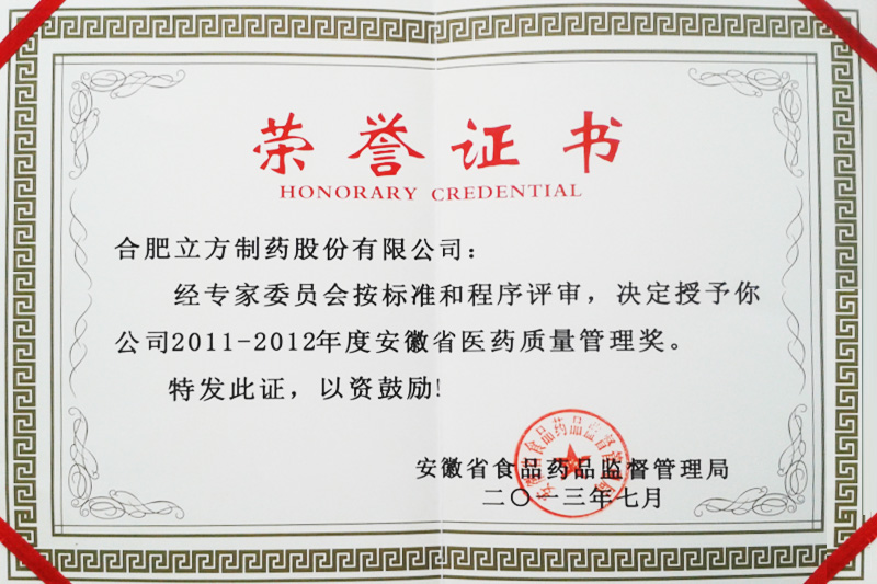 2011-2012省医药质量管理奖