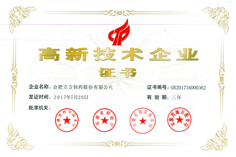 高新技术企业证书
