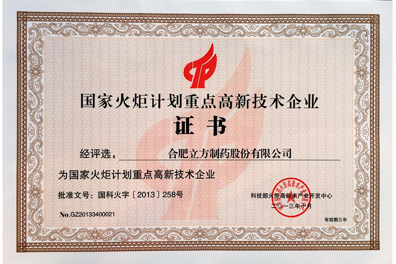 星空(中国)官方 国家火炬计划重点高新技术企业证...