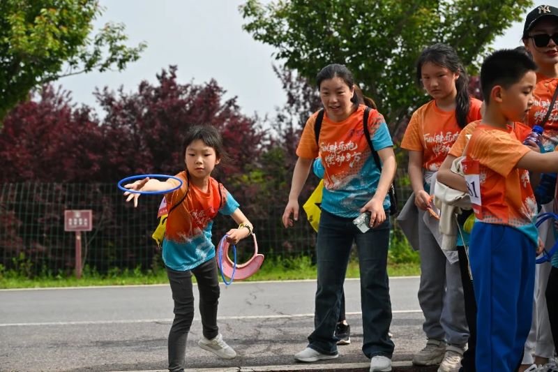 在欢乐跑的赛道中,趣味游戏成为最受欢迎的环节,家庭成员们携手参与各种挑战,在竞赛中共同度过一段温馨快乐的时光。套圈游戏区,彩色的圈圈在空中划出一道道优美的弧线,家长们或弯腰、或踮脚,试图将圈圈精准地套在玩具上。每当圈圈成功套中目标,现场便爆发出阵阵欢呼和掌声,孩子们则在一旁加油助威,或跃跃欲试,想要亲自体验一番。除此之外,欢乐跑赛道还设置了气球接力、寻宝大冒险等趣味项目,这些游戏不仅锻炼了身体,更增进家庭成员之间的情感交流。